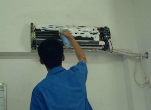 | 麻城空调维修师傅给麻城用户上门维修清洗空调。 |